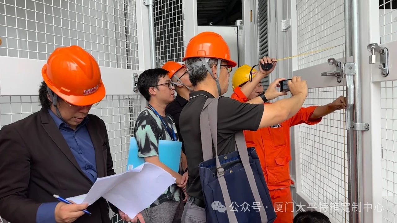 在驗(yàn)收現(xiàn)場,客戶代表對我司產(chǎn)品進(jìn)行了全面細(xì)致的檢查,從外觀美觀度、箱體材質(zhì)及焊接工藝、機(jī)柜設(shè)備安裝預(yù)制位到防腐防水等多項(xiàng)產(chǎn)品功能逐一核驗(yàn)。廈門太平以專業(yè)的研發(fā)設(shè)計(jì)、行業(yè)一流的生產(chǎn)工藝、嚴(yán)格的全流程質(zhì)量把控和高效的團(tuán)隊(duì)協(xié)作,贏得了客戶的高度贊譽(yù)。